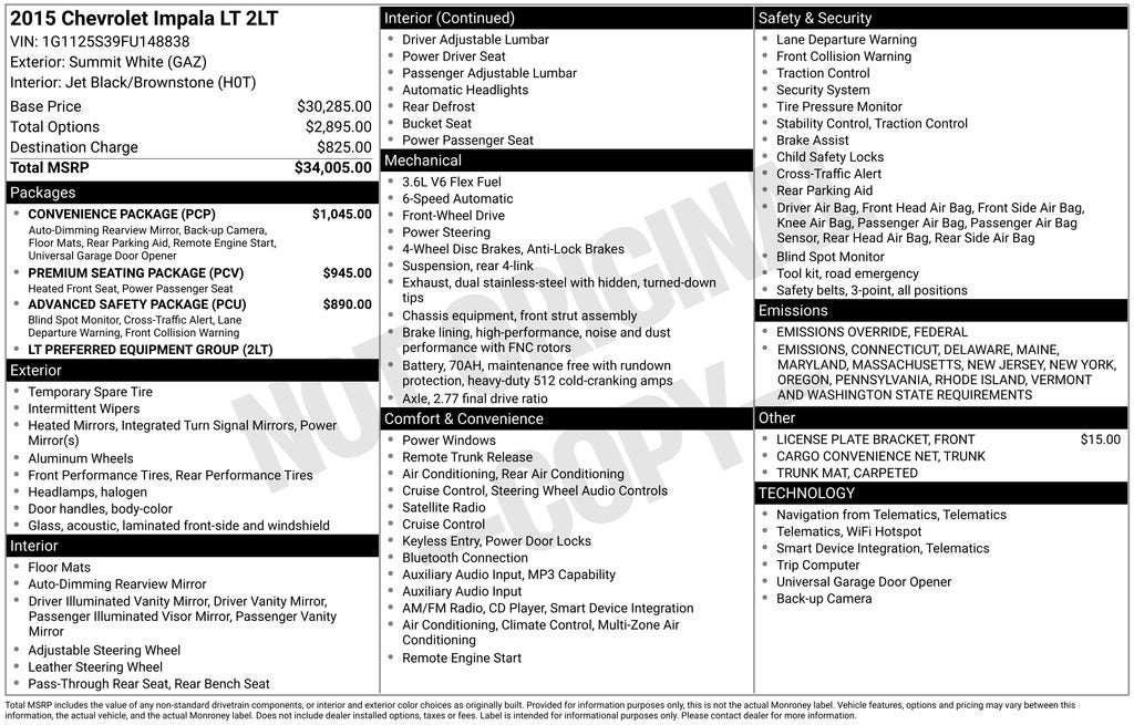 *** ONE OWNER ***, *** CLEAN CARFAX ***, *** BACKUP CAMERA ***, *** HEATED SEATS ***, *** LANE CHANGE ALERT ***, *** SIDE BLIND ZONE ALERT ***, *** REMOTE START ***, *** REAR PARK ASSIST ***, Impala LT 2LT, 4D Sedan, 3.6L V6 DI DOHC, Summit White, 8-Way Power Front Passenger Seat Adjuster, Advanced Safety Package, Auto-Dimming Inside Rear-View Mirror, Carpeted Trunk Mat, Convenience Package, Forward Collision Alert, Heated Driver & Front Passenger Seats, Lane Departure Warning System, Preferred Equipment Group 2LT, Premium Carpeted Front & Rear Floor Mats, Premium Seating Package, Rear Cross-Traffic Alert, Rear Park Assist, Rear Vision Camera, Remote Vehicle Starter System, Side Blind Zone Alert, Sueded Microfiber Seat Trim, Trunk Cargo Convenience Net, Universal Home Remote.