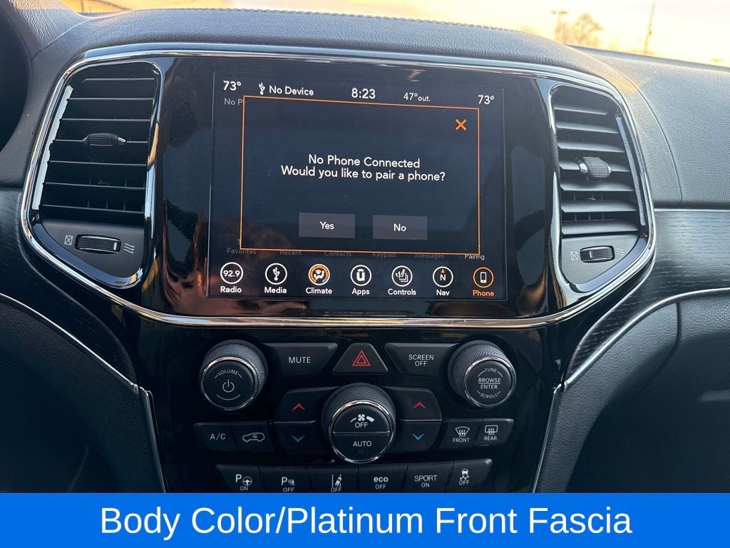 The Platinum Series Group elevates this Grand Cherokee to new heights, adding premium touches like a gloss black grille, body-color exterior accents, and stunning 20-inch platinum aluminum wheels. The attention to detail is evident in every aspect of this vehicle, from the sleek exterior design to the meticulously crafted interior.
