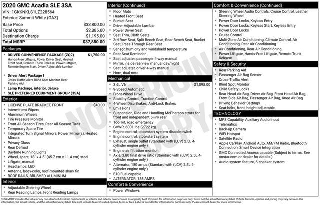 2020 GMC Acadia SLE