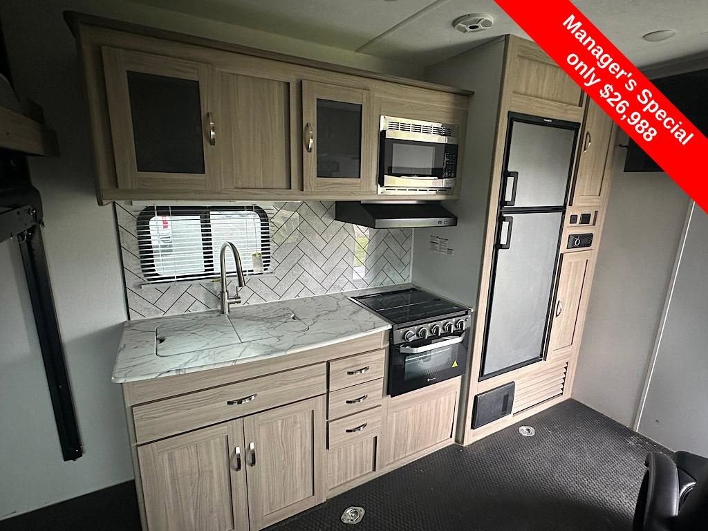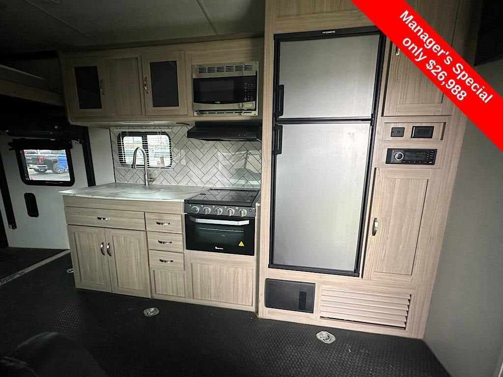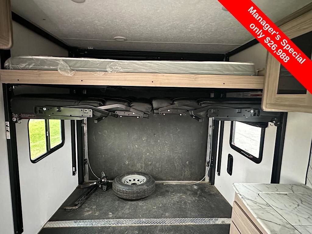 This 2022 Forest River Work & Play 27B Toy Hauler is available now at Coughlin of Chillicothe. Designed for adventure, the Work & Play 27B blends heavy-duty construction with home-like comfort, making it the perfect choice for RVers who want to bring their toys along for the journey. With ample garage space, a spacious living area, and Forest Rivers durable build quality, its ready for weekend trips or extended stays.
