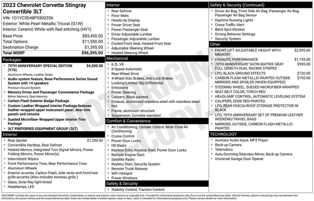 - Included with Adrenaline Red Dipped interior or 70th Anniversary Special Edition