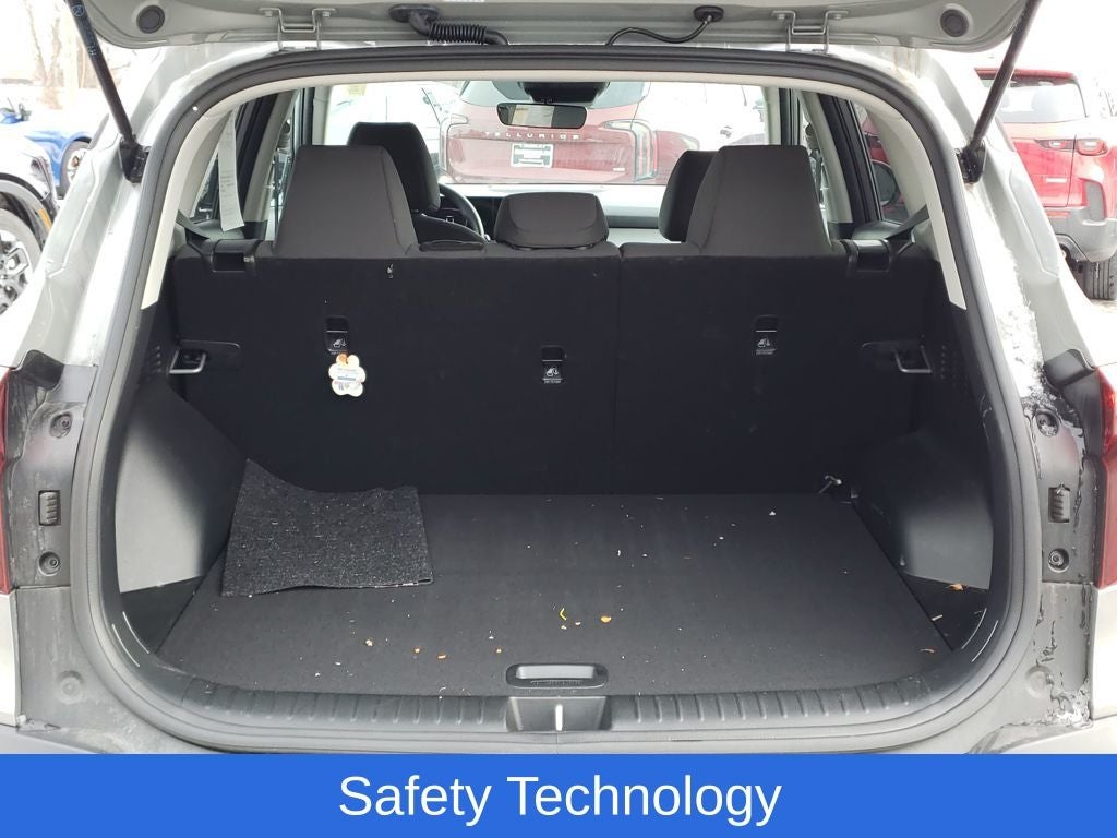 4-Wheel Disc Brakes, 6 Speakers, 6.052 Axle Ratio, ABS brakes, Air Conditioning, Alloy wheels, AM/FM radio, Apple CarPlay & Android Auto, Auto High-beam Headlights, Brake assist, Bumpers: body-color, Cargo Net (Floor), Carpet Floor Mats, Cloth Seat Trim, Delay-off headlights, Driver door bin, Driver vanity mirror, Dual front impact airbags, Dual front side impact airbags, Electronic Stability Control, Exterior Parking Camera Rear, Four wheel independent suspension, Front anti-roll bar, Front Bucket Seats, Front Center Armrest, Front reading lights, Fully automatic headlights, Illuminated entry, Low tire pressure warning, Occupant sensing airbag, Outside temperature display, Overhead airbag, Overhead console, Panic alarm, Passenger door bin, Passenger vanity mirror, Power door mirrors, Power steering, Power windows, Radio: AM/FM Display Audio, Rear window defroster, Rear window wiper, Remote keyless entry, Reversible Cargo Mat/Tray, Security system, Speed control, Speed-sensing steering, Split folding rear seat, Spoiler, Steering wheel mounted audio controls, Tachometer, Telescoping steering wheel, Tilt steering wheel, Traction control, Trip computer, Variably intermittent wipers, and Wheels: 17 Alloy w/Dark Gray Finish.